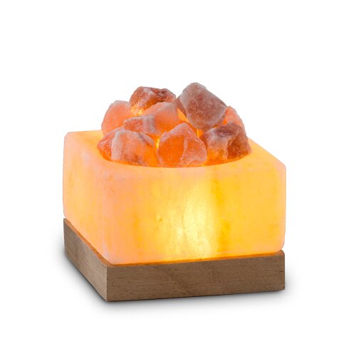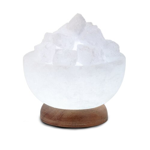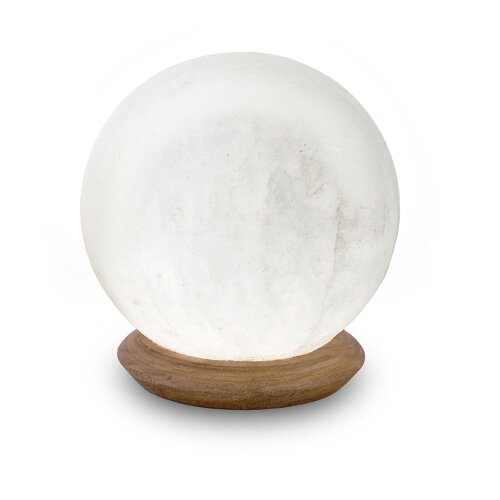 USB Salt Bowl PETITE ROUND, White Line, with salt crystals, with wooden base, Ø ca. 9 cm, H ca. 4 cm